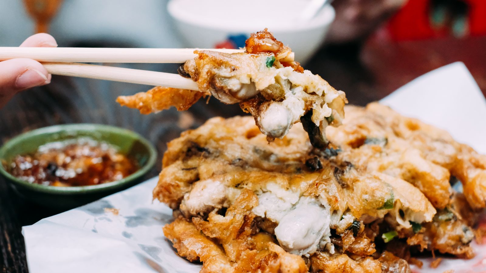 Hing Kee's Deep-Fried Oyster Omelette (煎蠔餅) is also worth trying. The golden stack of pancake-like omelettes filled with baby oysters is crusty and crunchy on the outside, while soft and tender on the inside. The oysters add a hint of sweetness to the dish, and dipping it in fish sauce makes it burst with flavors.