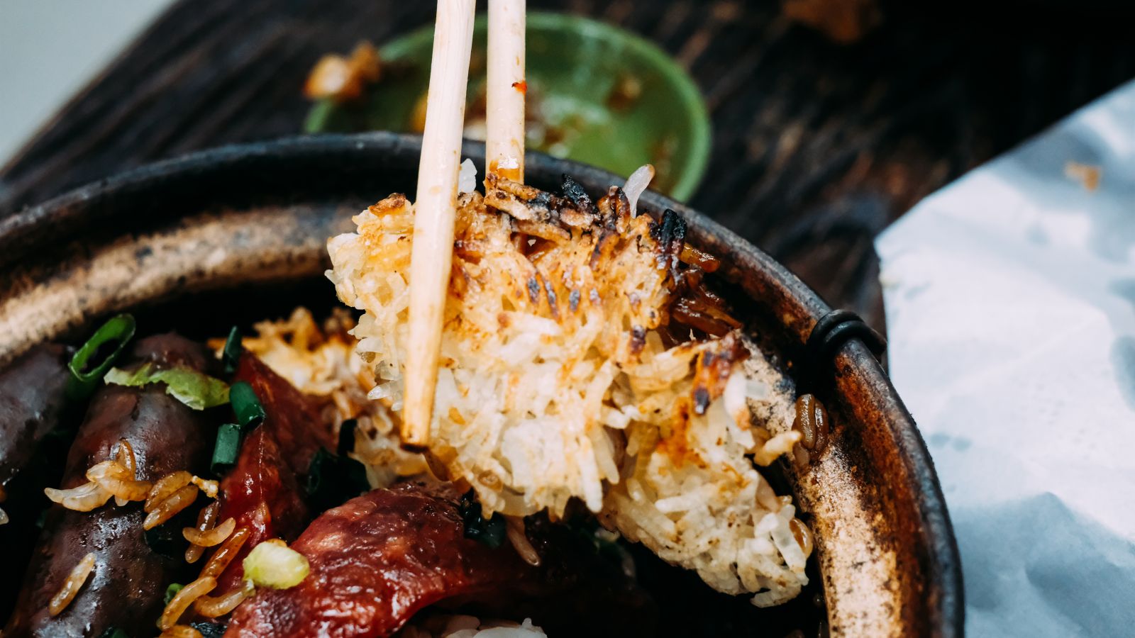 The intense smoky aroma and the sizzling sound of the rice make it extra comforting. Be sure to mix well so each grain is coated in dark soy sauce (but be careful don't be too greedy because it may make your rice too salty!) and don't forget to dig deep for the crispy layer of rice at the bottom of the clay pot!