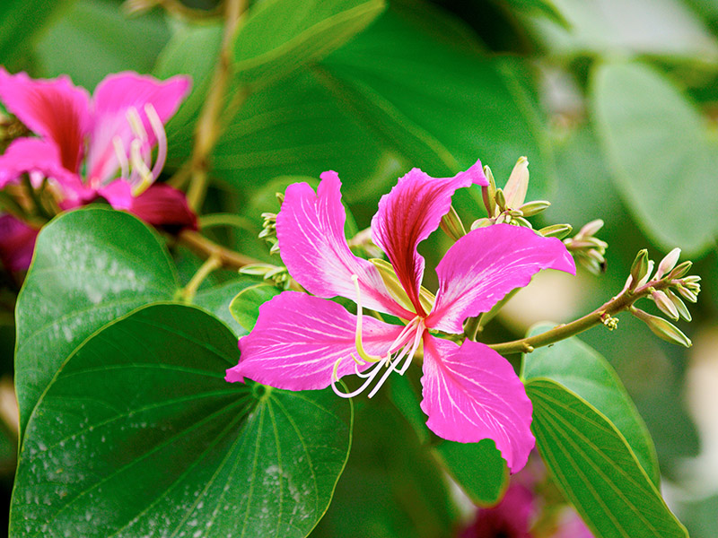 The most important collection in the Gardens in the early days was Bauhinia x Blakeana, the flower and emblem of Hong Kong, which can now be seen easily around parks, gardens, and roadsides. The tree was first discovered by a French Catholic missionary in Pok Fu Lam (薄扶林) in the late 19th century, and it was the first of its kind in the world. Recent DNA research revealed that the trees around the city are in fact clones of the original in Pok Fu Lam 120 years ago! The flower usually blooms in winter around early to mid-December, making it a rare sight for visitors.