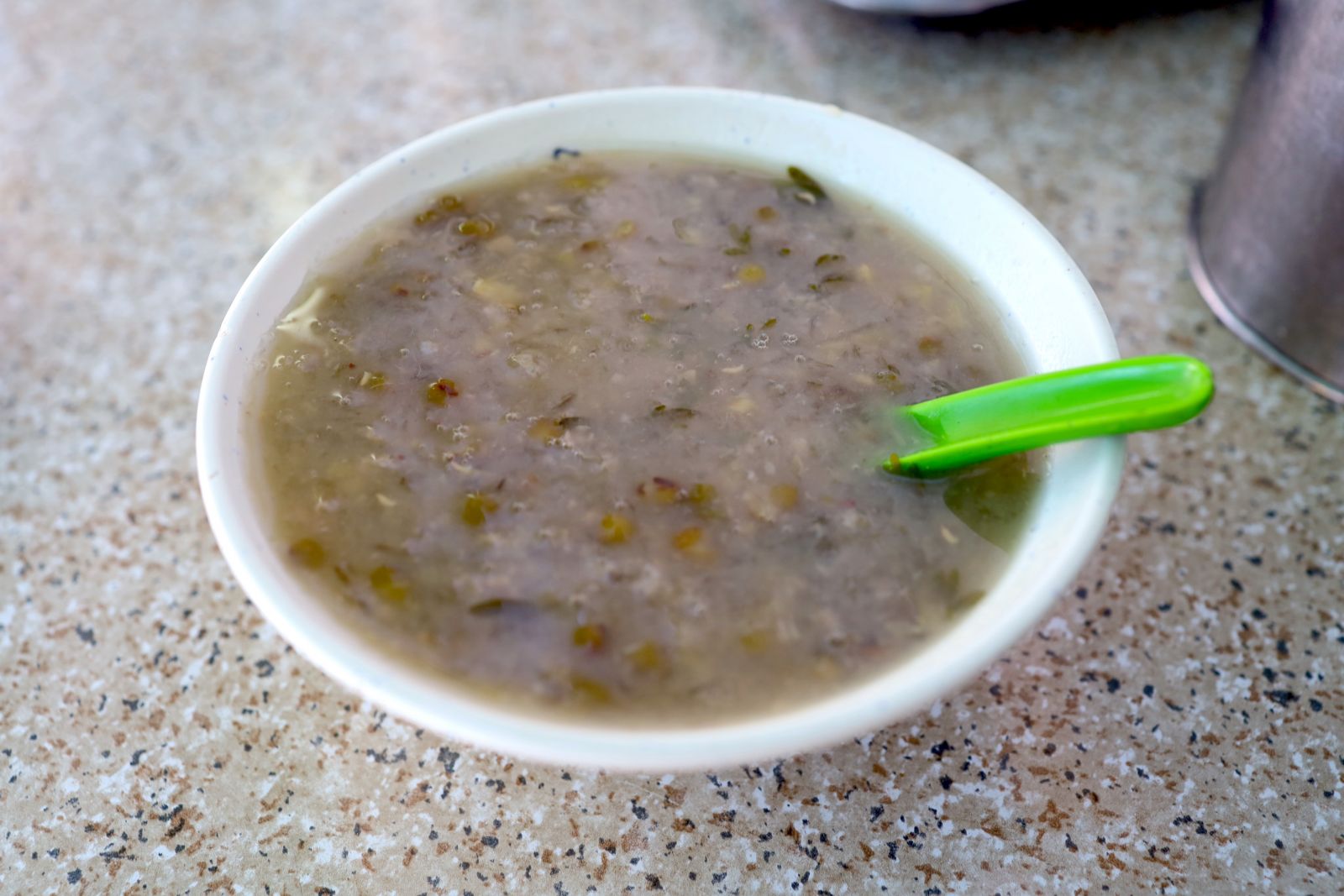 The main ingredient in this dessert soup is green beans, also known as mung beans, which are boiled until they are soft and slightly mushy. The beans are typically simmered with sugar to create a sweet soup, though the level of sweetness can be adjusted according to personal preference. Some variations of the recipe might also include ingredients like pandan leaves, dried tangerine peel, or sago pearls, which add extra flavors and textures to the dessert. The green beans themselves are thought to have a cooling effect on the body, helping to alleviate heat and detoxify the system, making this a popular choice for a healthful dessert.