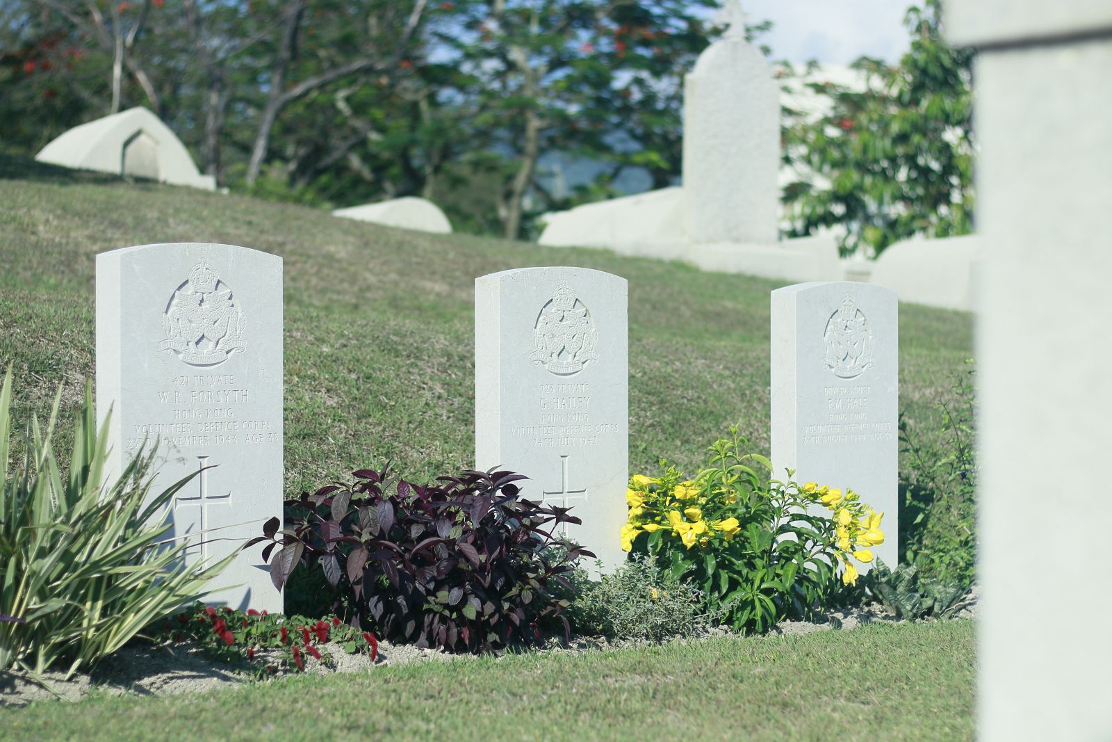 In this city of constant change, where buildings rise and fall and people move in and out, the history of Hong Kong is still present at the Stanley Military Cemetery. This site not only provides a place for reflection on past battles, but also offers glimpses into why Stanley is significant to the founding of Hong Kong. As you travel south along Wong Ma Kok Road, you will catch sight of the Cross of Sacrifice protruding from an octagonal base. Followed by a flight of steps, you will soon enter the serene grounds of this cemetery, which exudes a sense of quiet solitude.