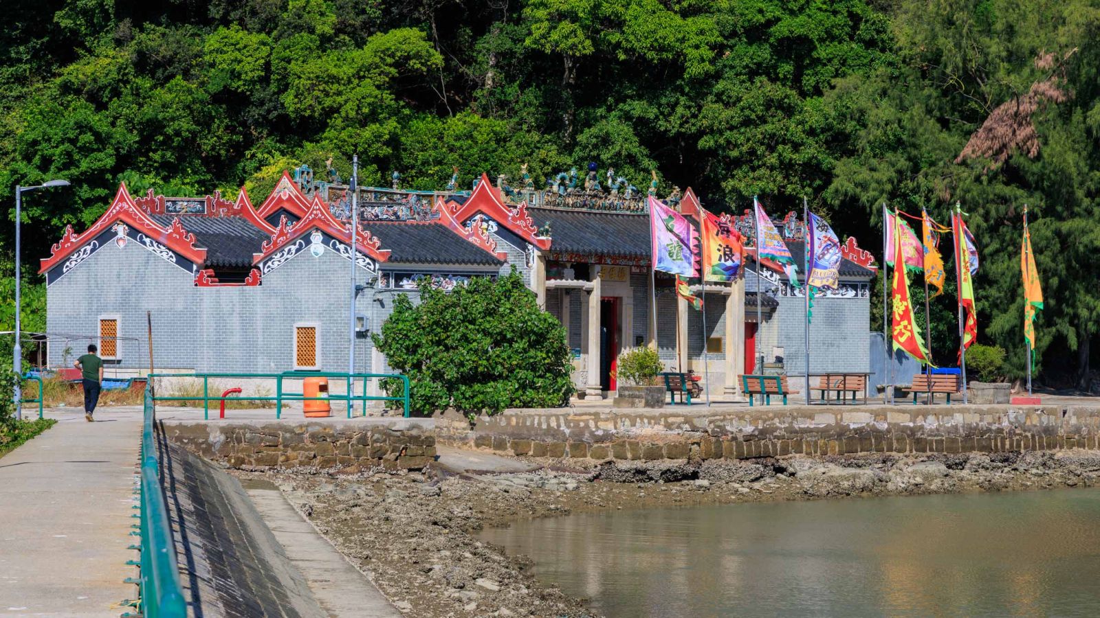 Similar to many other local temples in town, Yeung Hai Temple is structured in the classic Qing vernacular two-hall-three-bay architectural style. However, its interior stands out due to the lavish decorations that include handcrafted ceramic and wood murals illustrating ancient folktales and stories of heroes. Other than the excessive embellishment, you can also tell the villagers back in the days were pretty well-off as the building is supported by both stone and wooden pillars, which the latter could have already done the job. There are a few more treasures of high historical values that you should check out: an iron bell that is the oldest relic dating back to 1699, and a 150-year-old crafted couplet (對聯) inside the main hall.